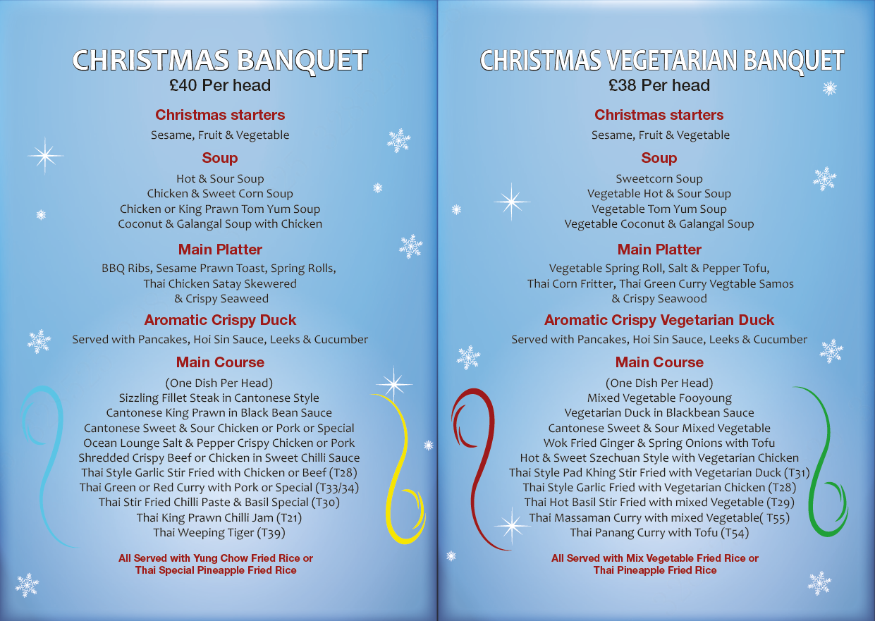 We are a Thai and Chinese restaurant in Manchester, offering professional and modern Chinese and Thai cuisine, all with an affordable dining experience. We also offer a special opening cocktail. If you're looking for healthy, authentic Thai and Chinese food in a relaxed atmosphere with friendly service, Ocean Lounge Restaurant will not disappoint you.